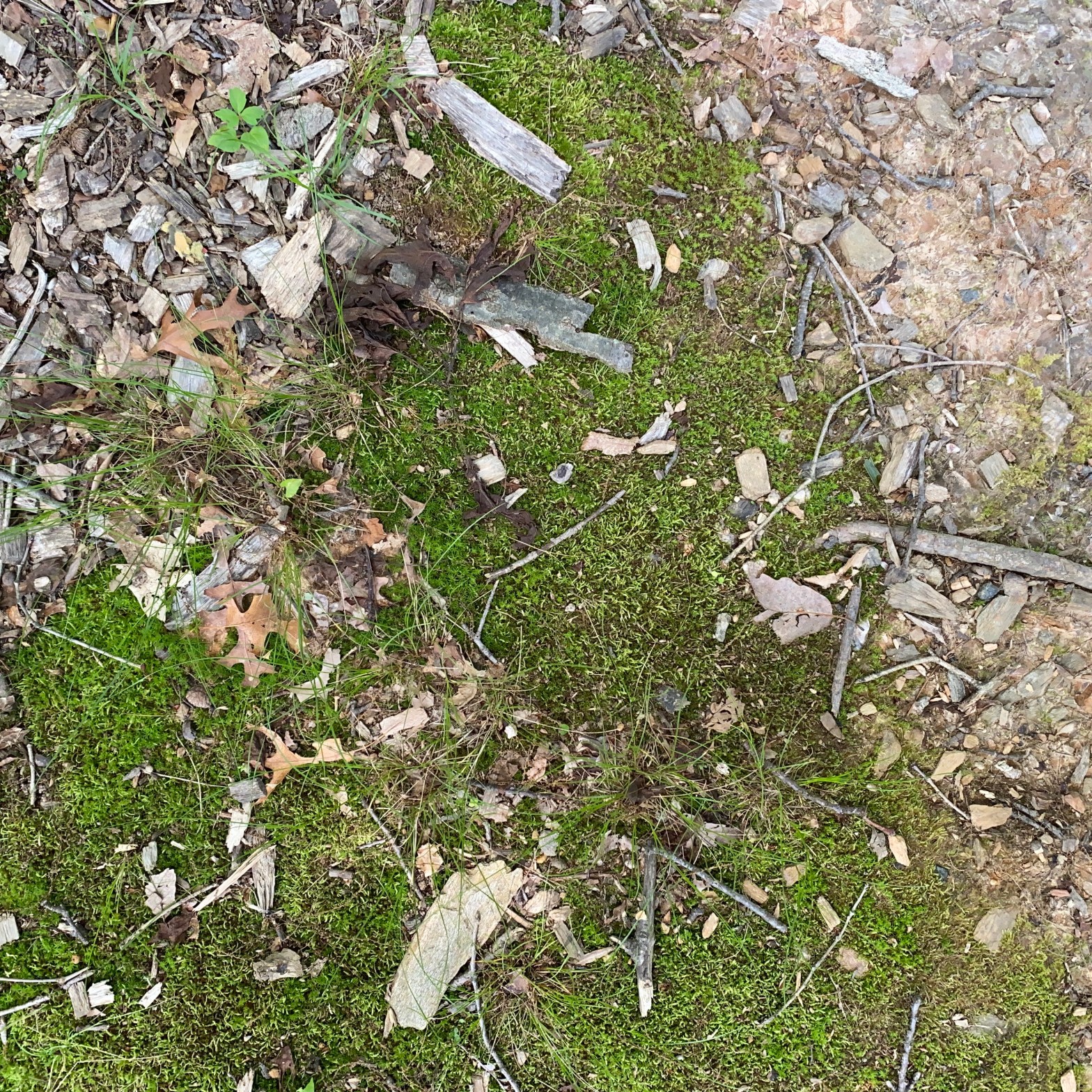 seen with moss: dead leaves, slowly decomposing to become new soil
