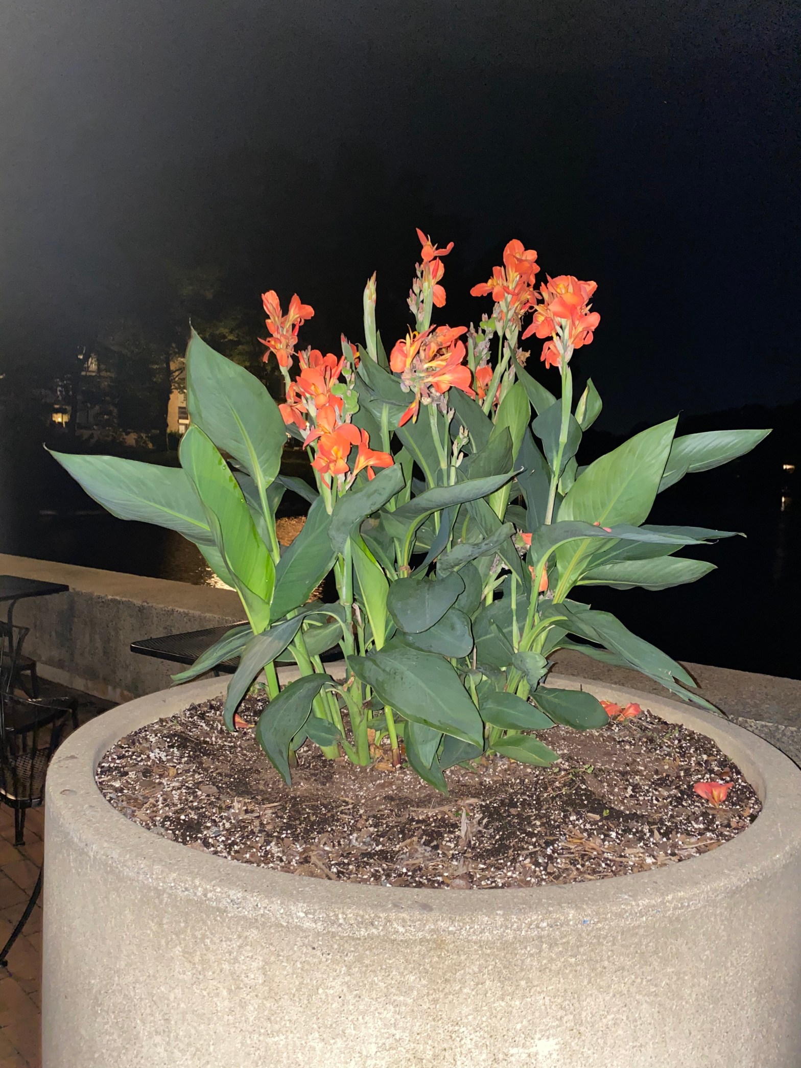flowers, seen two weeks ago, brought fall color to their concrete planter