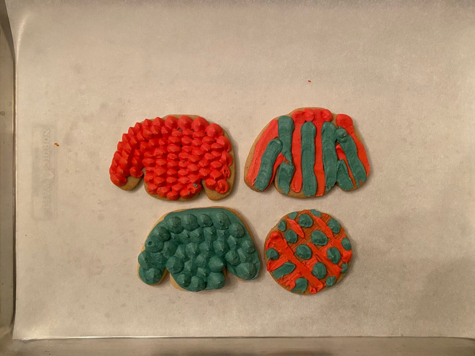 online gathering spread cookies, warmth (from friendship, sweaters), not COVID