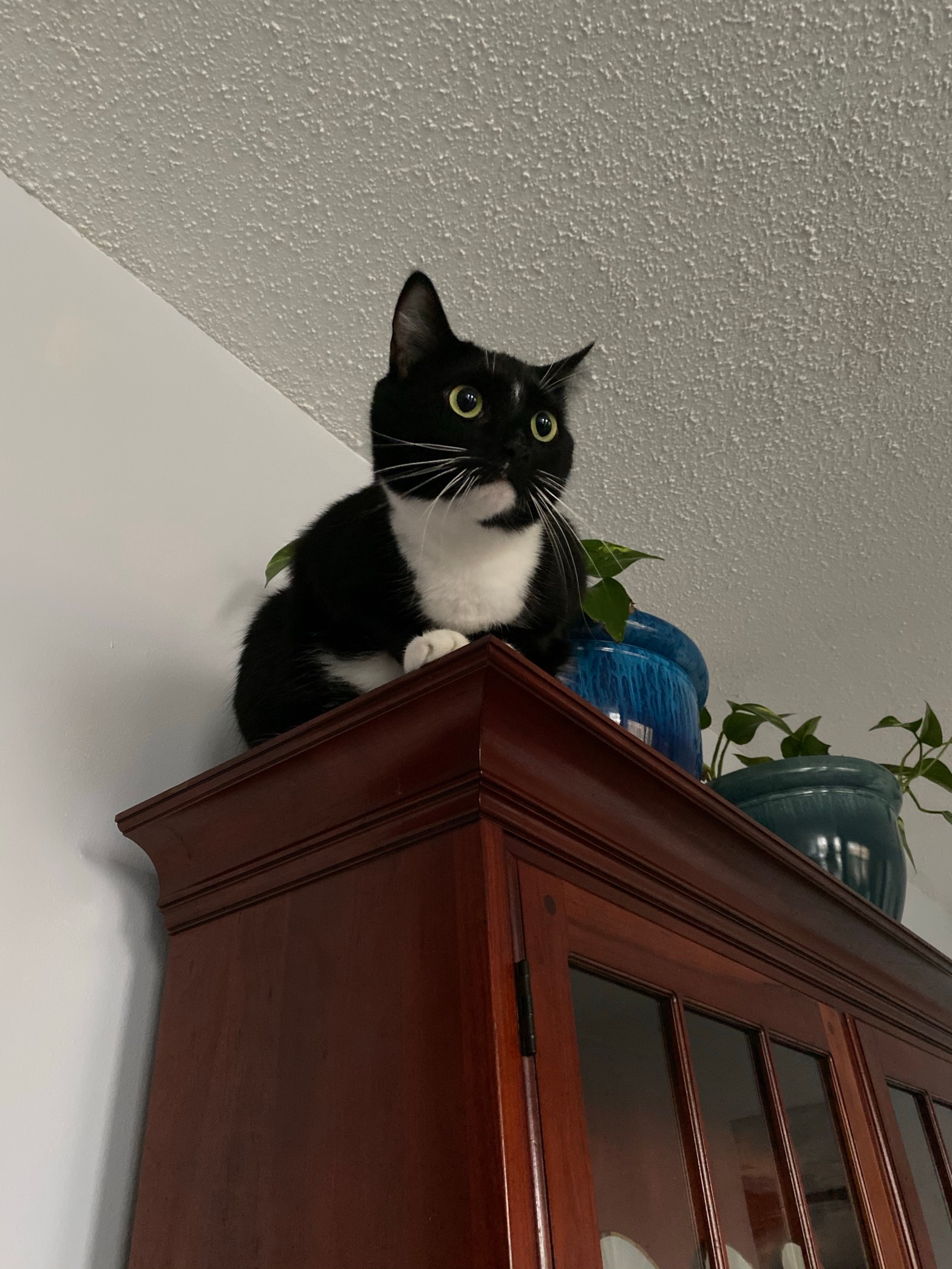 that’s not a gargoyle on the china cabinet: he loves wet food; purrs