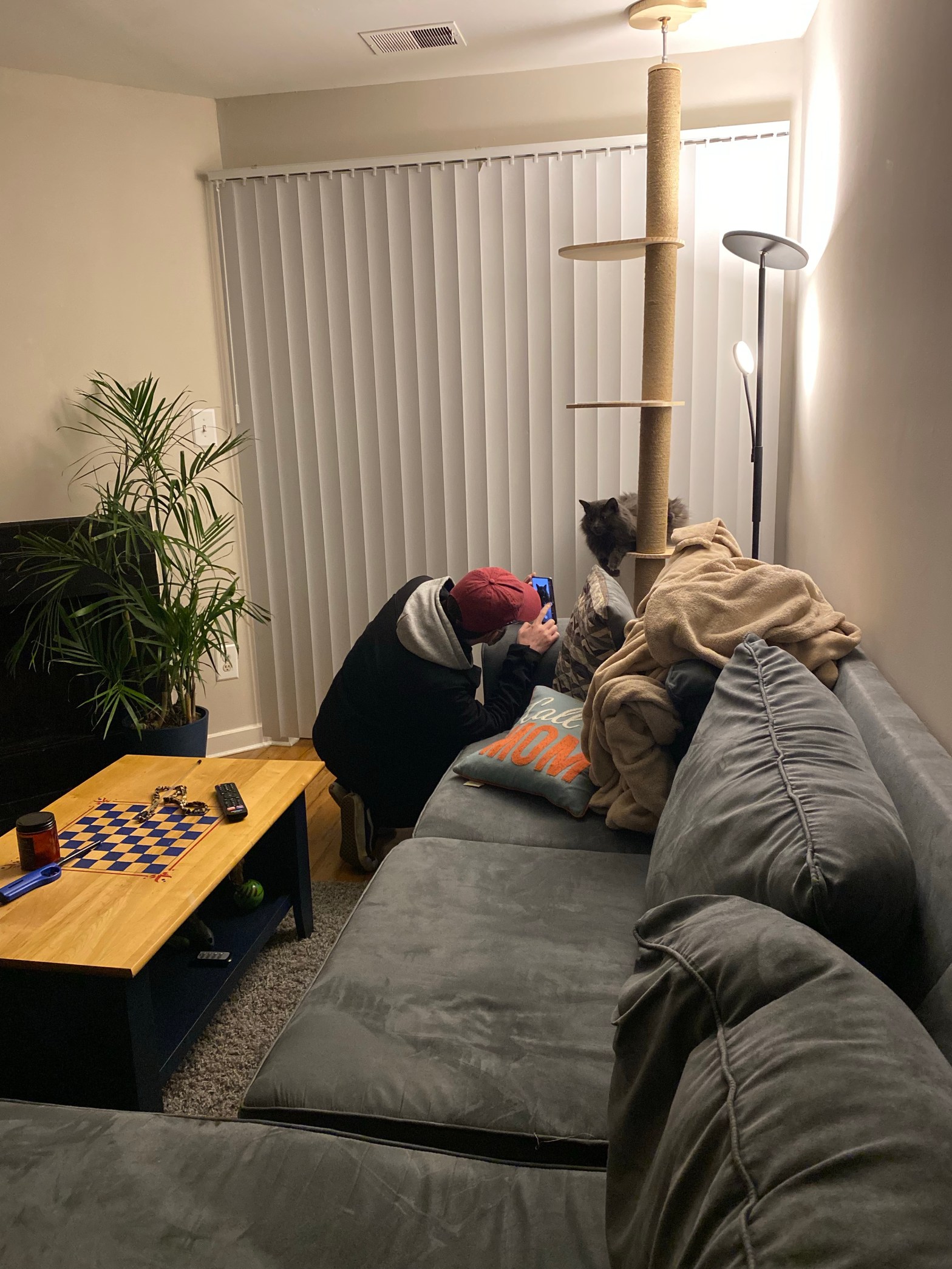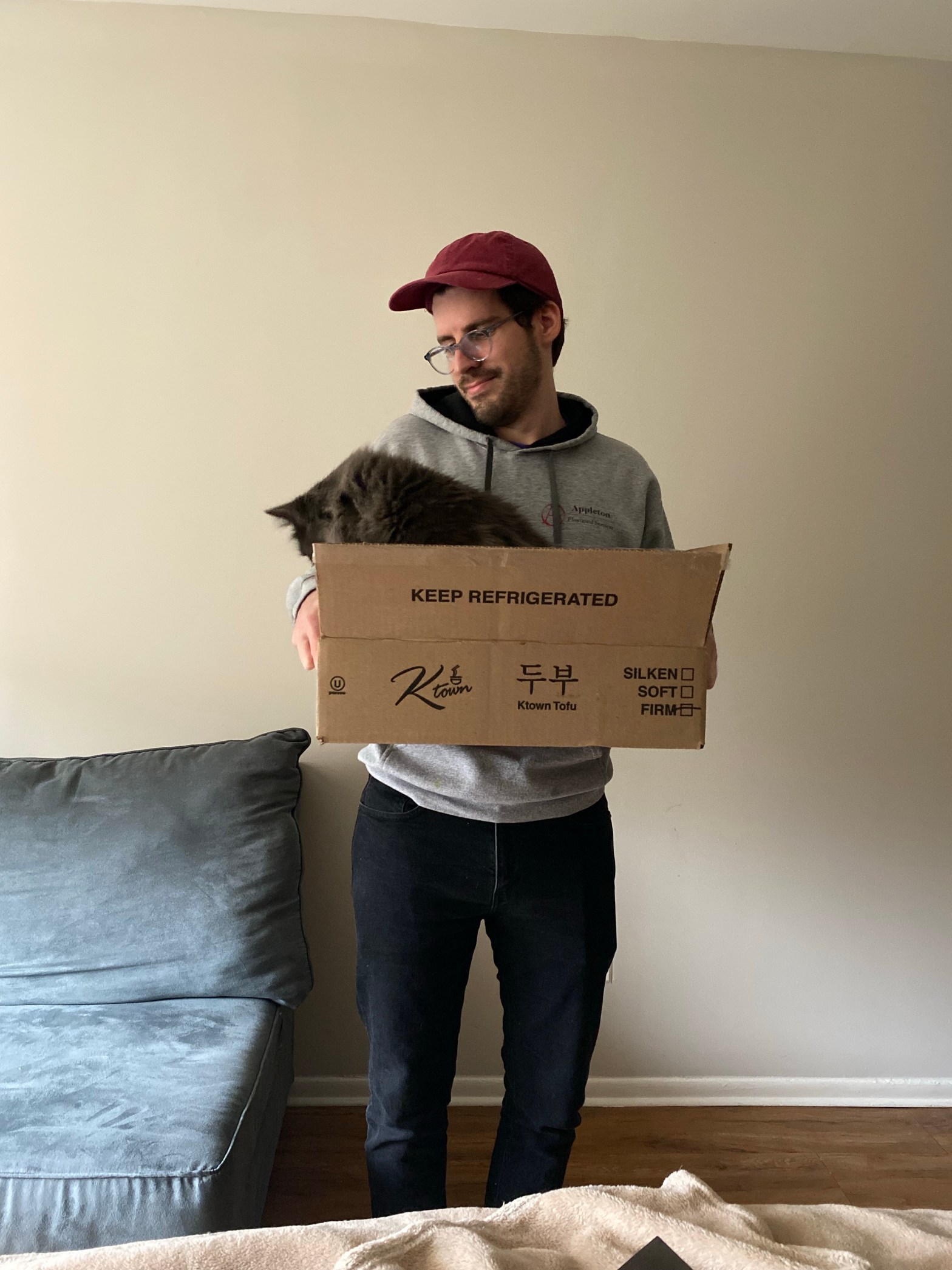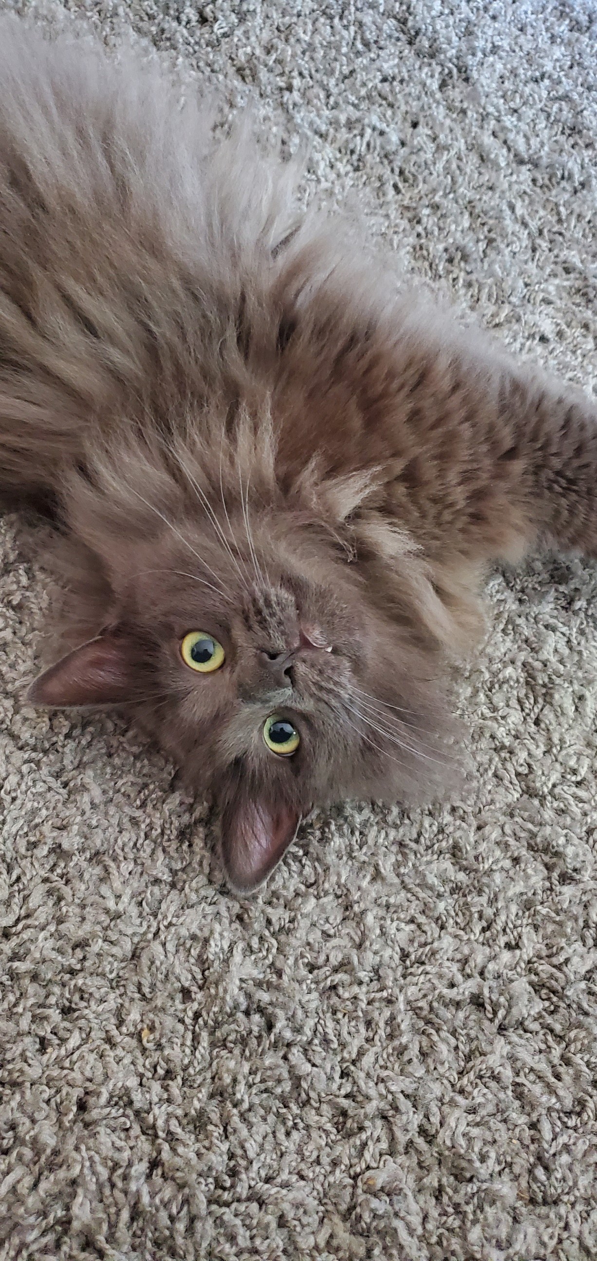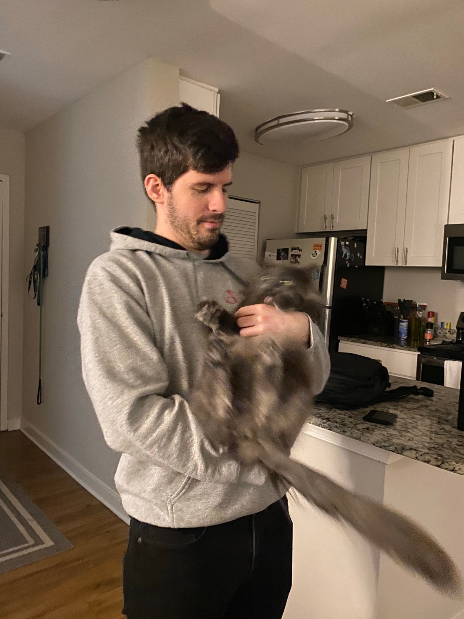 A fluffy and mischievous cat-boy, he loves to chase and be chased, and he hates it when you try to steal mats in his fur (he worked very hard to create them).